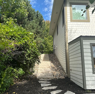 We collaborated with Sauna Supply Company out of Cokato to design this beautiful outdoor living space. We installed a spacious patio under the deck to blend seamlessly with this luxurious custom sauna from Sauna Supply Co. We installed natural stone steps along the side of the house, connecting to elegant stepping stones that lead to the patio for seamless access. A second natural stone staircase was installed leading down to a charming gravel patio, creating a cohesive and inviting retreat.